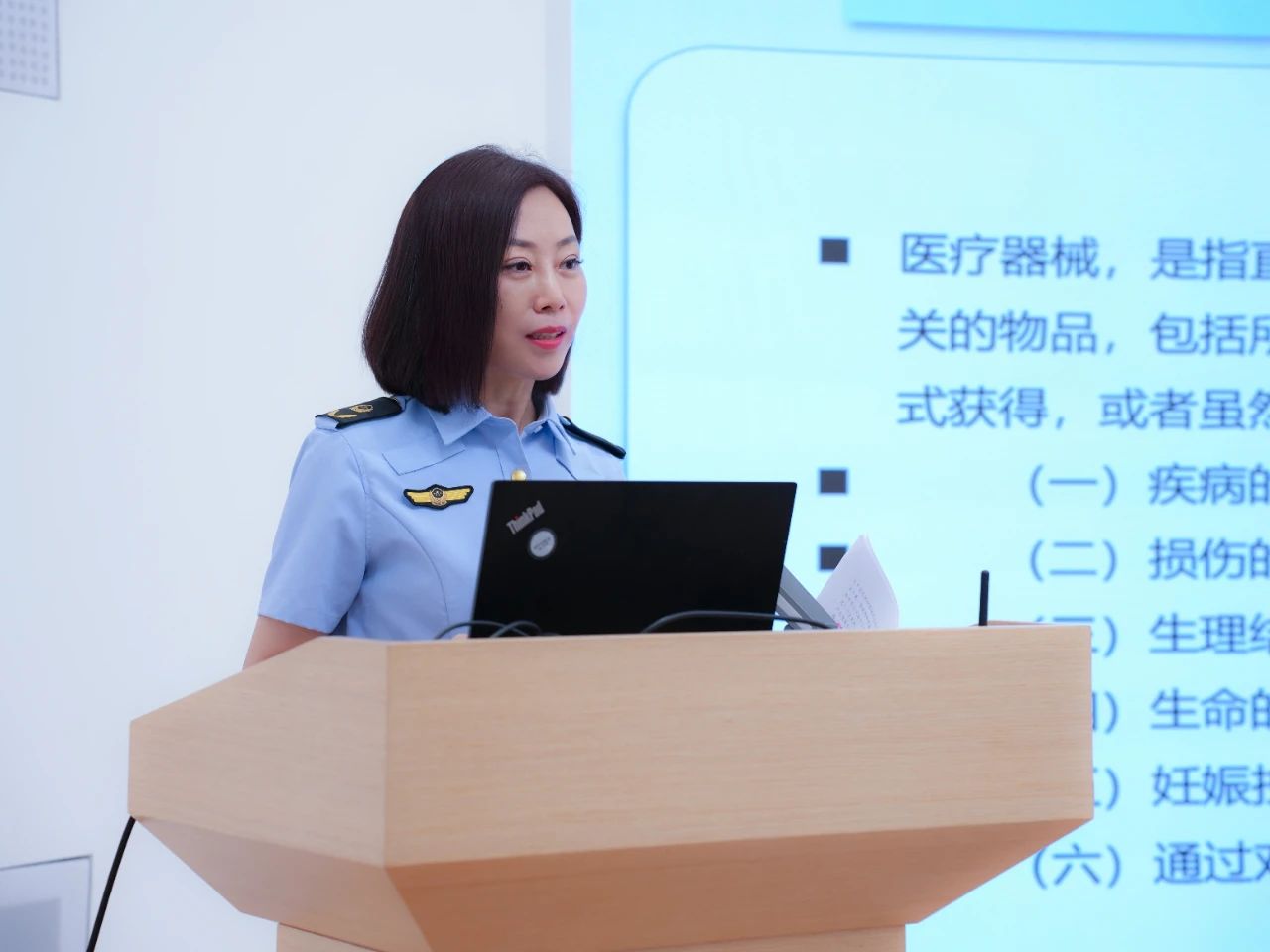 北京市藥監(jiān)局第二分局作為活動(dòng)主辦方,醫(yī)療器械生產(chǎn)監(jiān)管科科長趙姍進(jìn)行了醫(yī)療器械管理相關(guān)知識(shí)分享,幫助在校的師生們走出學(xué)校,了解當(dāng)前市場(chǎng)上醫(yī)療器械發(fā)展的新形勢(shì)、新情況,為今后在學(xué)習(xí)和科研中能夠緊緊扣住行業(yè)前沿,掌握技術(shù)脈絡(luò),打好政策、技術(shù)基礎(chǔ)。